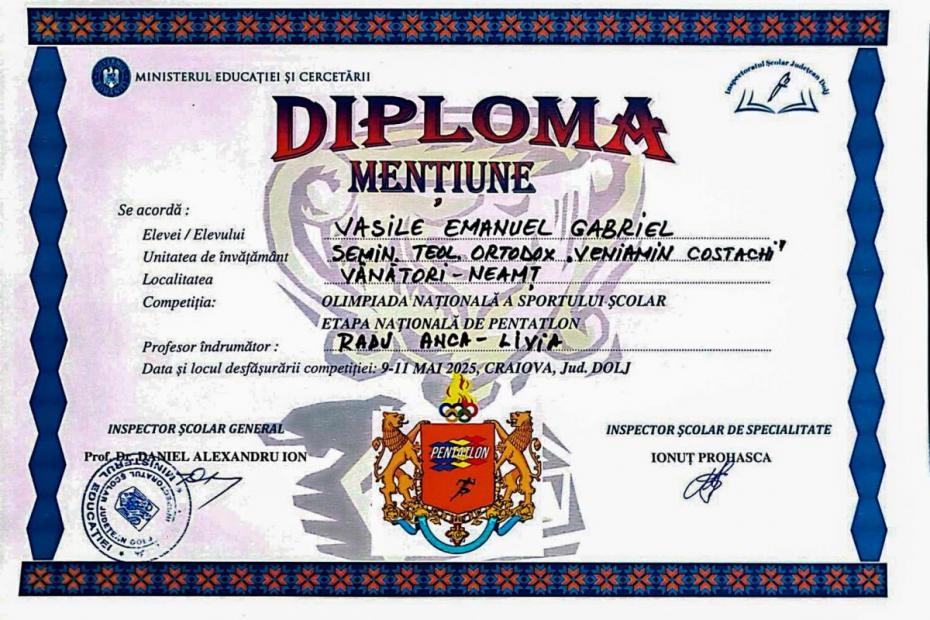 Performanță deosebită la Olimpiada Națională de Pentatlon: un elev seminarist, exemplu de perseverență și curaj